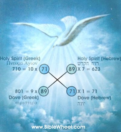 Hebrew words for Dove with two of the Greek and Hebrew phrases for the Holy Spirit,