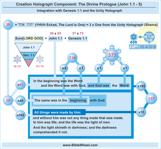 The Number 719: The Beginning The Number 39: ONE LORD The Number 137: The God of Truth The Number 93: LOVE and WILL The Number 39: ONE LORD The Creation HyperHolograph union of Genesis 1.1 and John 1.1 The Sevenfold Logos Star The Unity Holograph