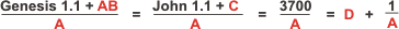Genesis 1.1 + AB = 3700 = John 1.1 + C