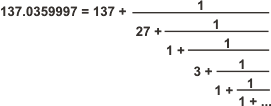 There is a profound relation between the inverse Fine Structure Constant and the Holographic Generating Set (A = 27, B = 37, C = 73) revealed by the continued fraction expansion of 137.0359997. An explanation of continued fractions, complete with an online calculator (so the results displayed below can be instantly checked) has been made available This link takes you off the Bible Wheel site and opens a new window by Stephen Schmidt. Here is the continued fraction expansion, displaying the first six terms: