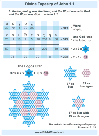 This image shows how the Logos Star is encoded in the text of John 1.1: