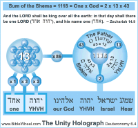 primary claim of the verse - the Lord is One (Echad = 13) - to the sum of the entire verse 1118