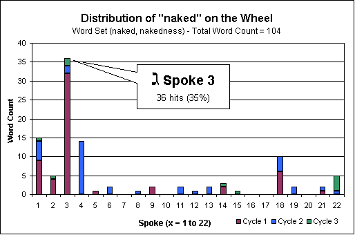 The green bar at the top of Spoke 3 corresponds to the references to nakedness found in