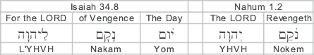 The appearance of Nakam in both Isaiah 34 and Nahum, especially in the context of the Lord's Day of Vengence,