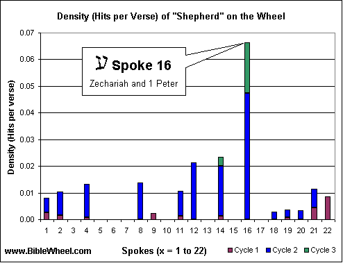 In light of God as the true Head and Chief, Who Himself has declared "I am the first (Roshon)", this sacred word reveals God as our omniscient, all seeing Shepherd. This is all integrated with the geometric structure of the Wheel. The graph below shows the distribution density (hits per verse) of the word shepherd on the Wheel:
