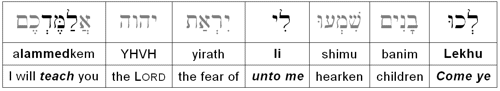 - AV Ps 34:11 Come ye (Lekhu) children, hearken unto me: I will teach you the fear of the LORD.