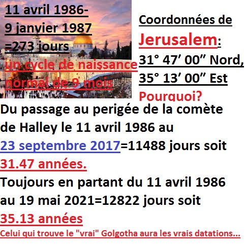 31.47 35.13 coordinates of Jerusalem the one who have Golgotha coordinates will understand the meaning of all