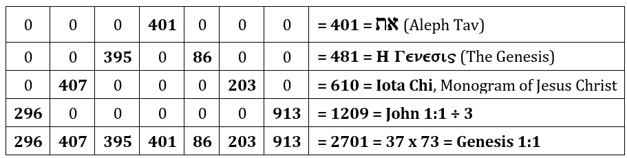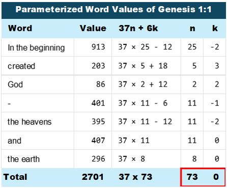 2701 = 37 x 73 = H(4) x S(4) = Sum of Genesis 1:1