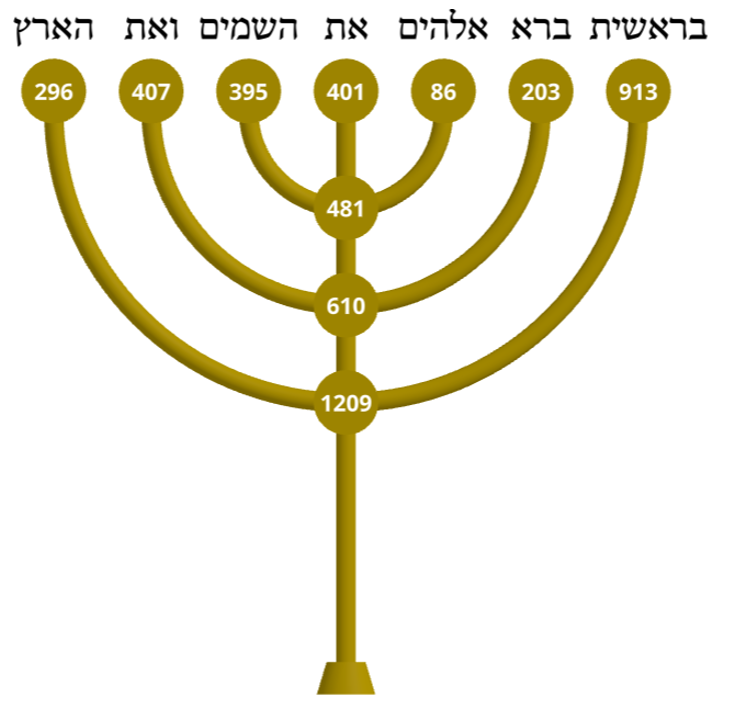 If we pair the values of Genesis 1:1 (like the pair branches of the menorah) we see the middle pair give us 407 + 203 = 610 = Iota Chi so its encoded in both the symmetry of the menorah and the Discrete Fourier Transform (DFT)